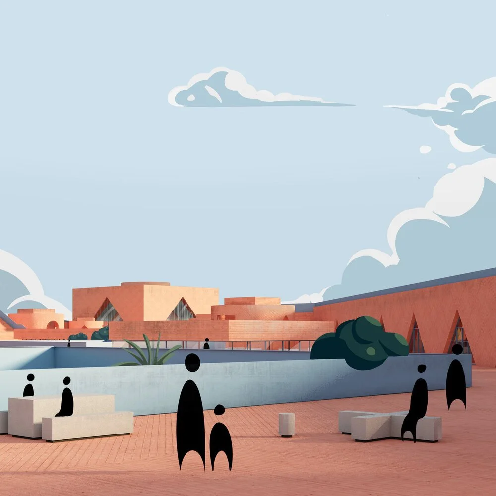 Good Neighbor: Beyond diplomacy, the Embassy is a public space featuring cultural institutions, playgrounds, gathering areas, and a rooftop promenade with a running track, blending Cairo's dynamic culture with its geopolitical mission.